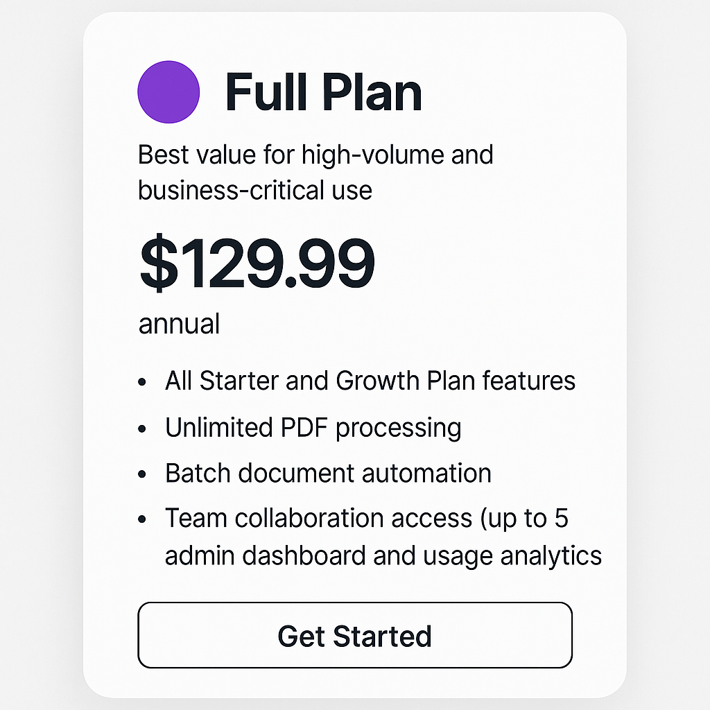 🚀 The ultimate plan for agencies, enterprises, or document-heavy teams needing top performance and priority service.